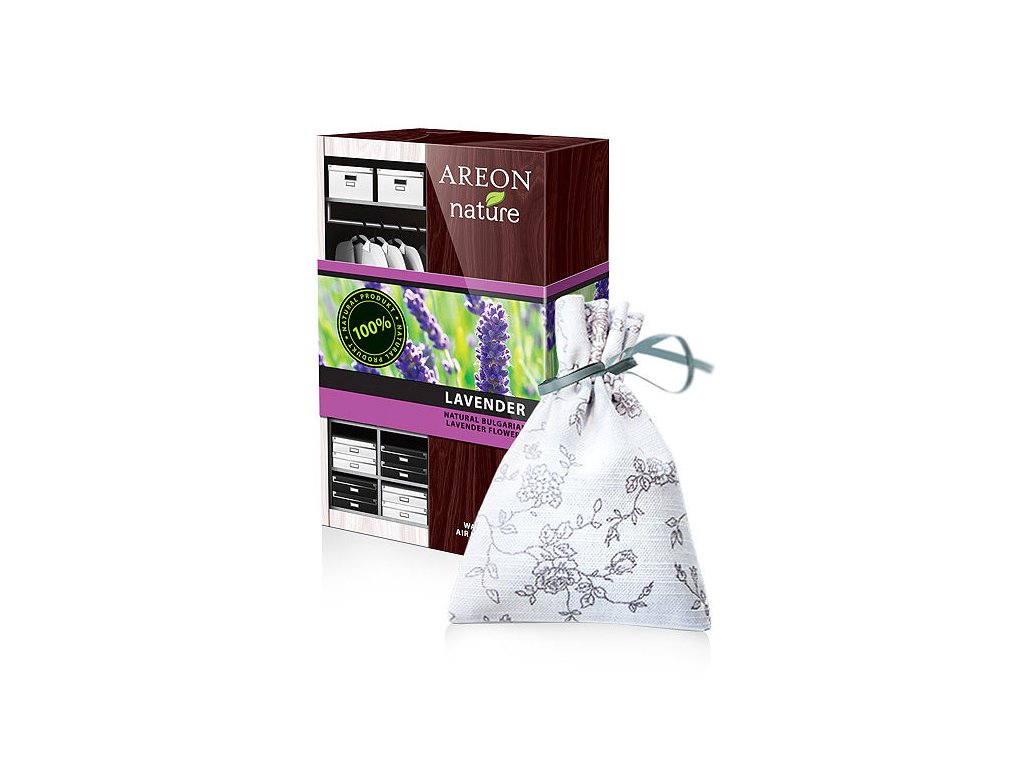 Areon Nature Premium Lavender vás očaruje uklidňující vůní levandule. Sušené lístky levandule jsou obohaceny o rostlinné esence.