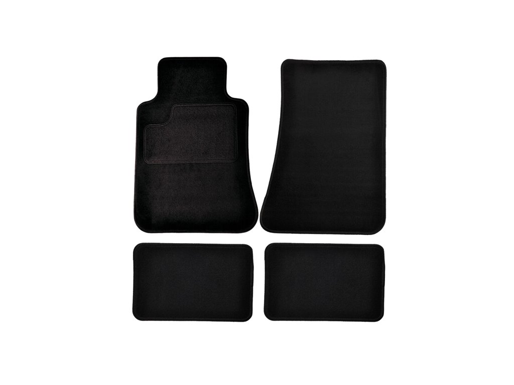 • Sada 4ks pro celé vozidlo • Univerzální velikost • Materiál: textil • Barva: černá s lemem • Protiskluzová úprava spodní strany autokoberců • Odolná gumová podložka v prostoru pod pedály