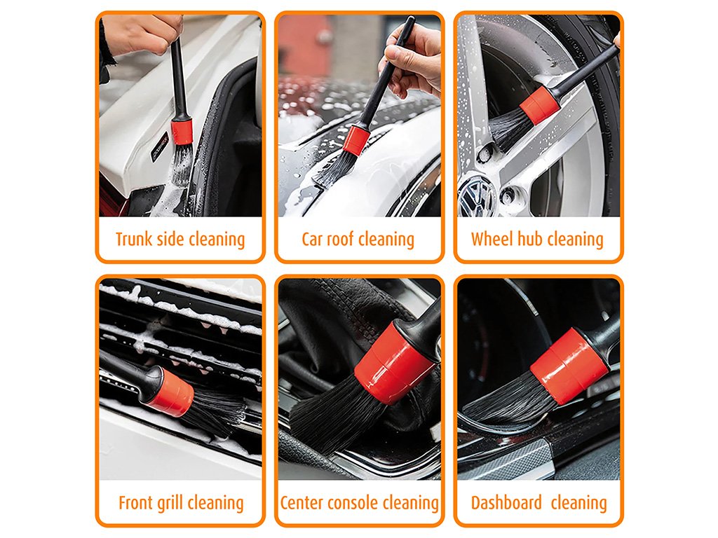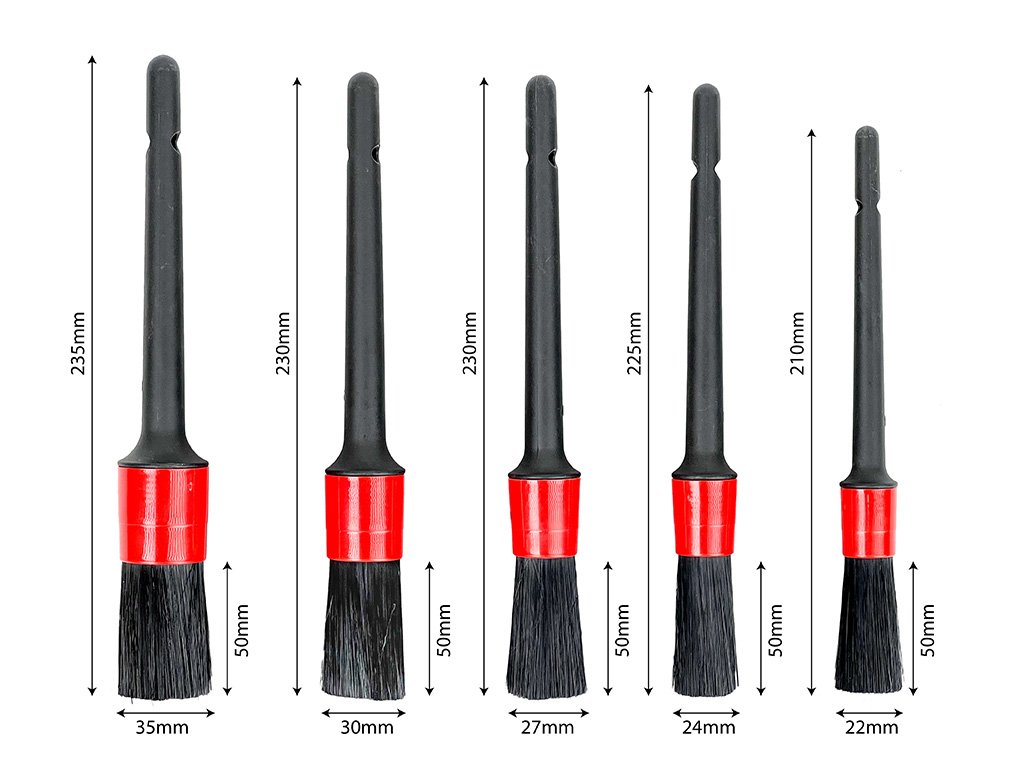 Sada detailingových štětců Automax obsahuje 5 štětců různých velikostí (35mm, 30mm, 27mm, 24mm, 22mm), které jsou navrženy pro důkladné a šetrné čištění těžko přístupných míst vašeho automobilu. Štětce jsou vyrobeny z kvalitních materiálů, díky nimž efektivně odstraňují nečistoty, aniž by poškodily citlivé povrchy. Ideální pro péči o ventilační mřížky, palubní desku, disky kol, znaky automobilu či další detaily, které vyžadují precizní práci. Ergonomický design rukojeti zajišťuje pohodlné držení a snadnou manipulaci. Perfektní nástroj pro nadšence do aut i profesionály v oblasti auto detailingu.