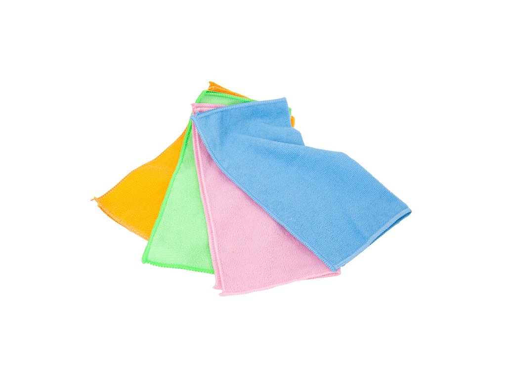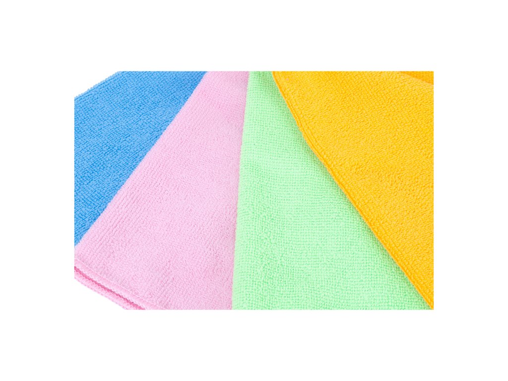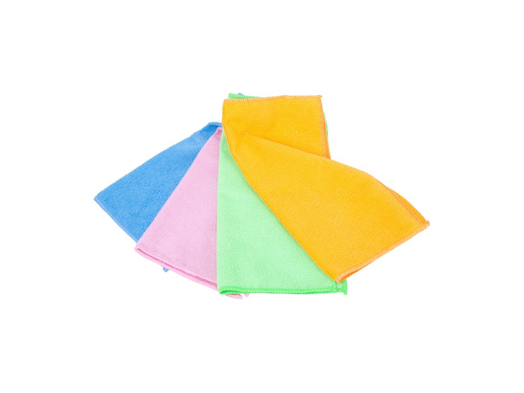 Sada 4 ks kvalitních mikrovláknových utěrek (30x30 cm), 200GSM, certifikace OEKO-TEX, ISO9001, AZO free. Rychle schnou, nezanechávají šmouhy a jsou šetrné k povrchům.
