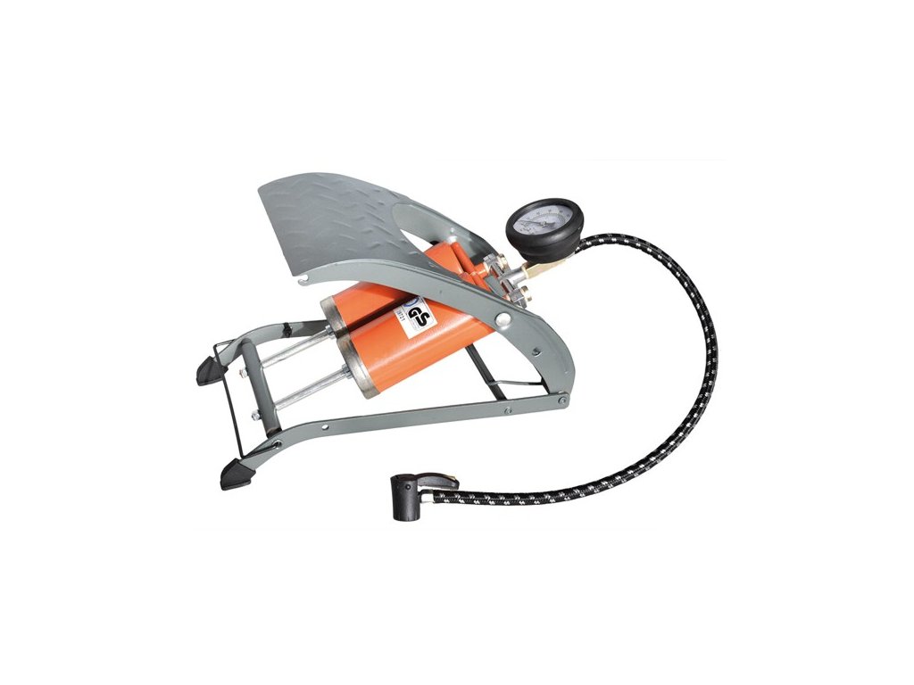 Tlakování pomocí sešlapovacího pedálu. Manometr součástí přístroje.