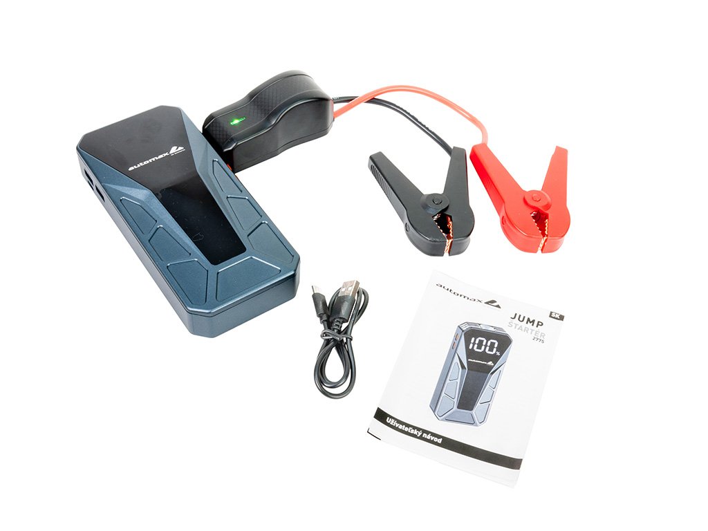 Pro bezpečný provoz jsou součástí inteligentní startovací kabely s vícenásobnou ochranou (např. proti přepólování, zkratu, přepětí a přehřátí). Praktickou výbavou je také integrovaná LED svítilna se 3 režimy – bílé světlo, červené světlo a výstražné červené/modré blikání.