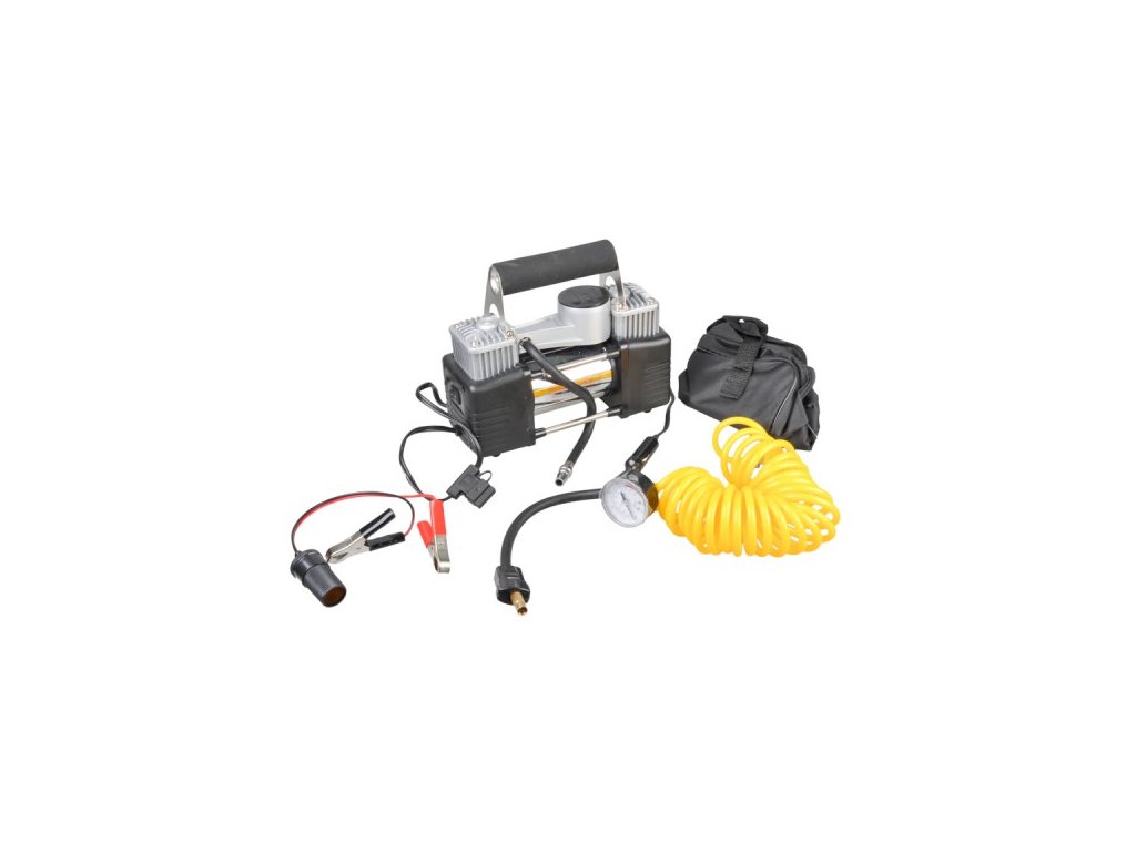 Kompresor 2pístový pro pohodlné nahuštění pneumatik. Na nahuštění pneumatiky by vám měly stačit dvě nebo tři minuty. Po této době by měl tlak vzduchu v pneumatice dosahovat požadovaných parametrů.