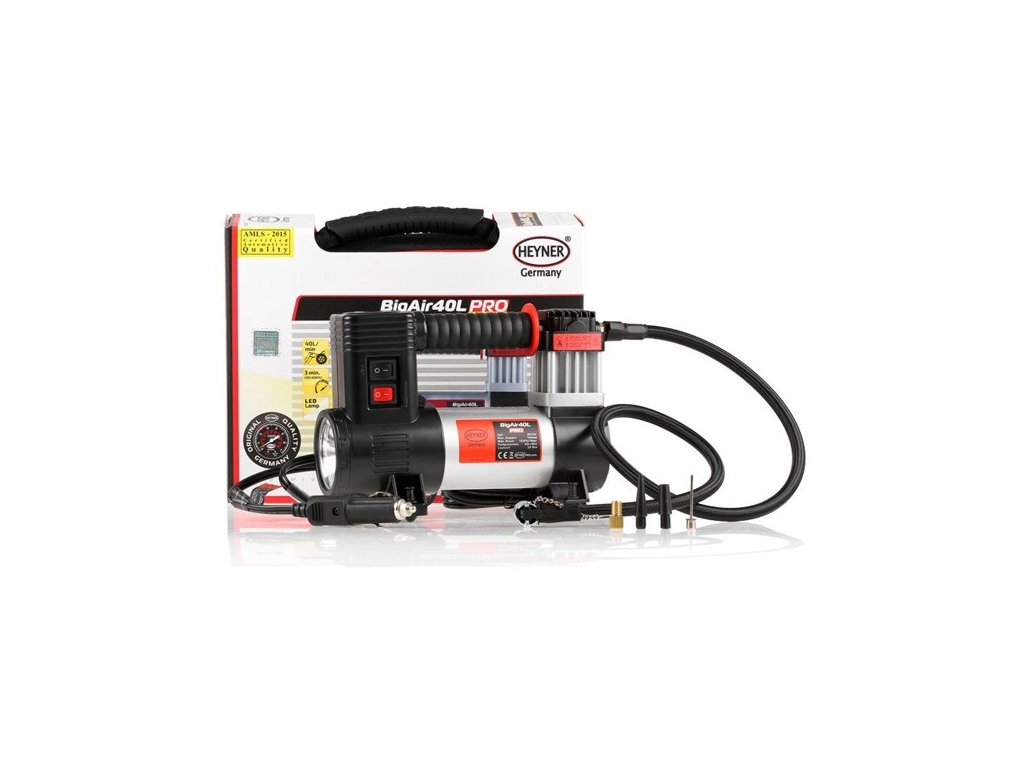 Výkonný 12V kompresor s manometrem Big Air 40 L. Příruční kompresor do automobilu od německého výrobce HEYNER.