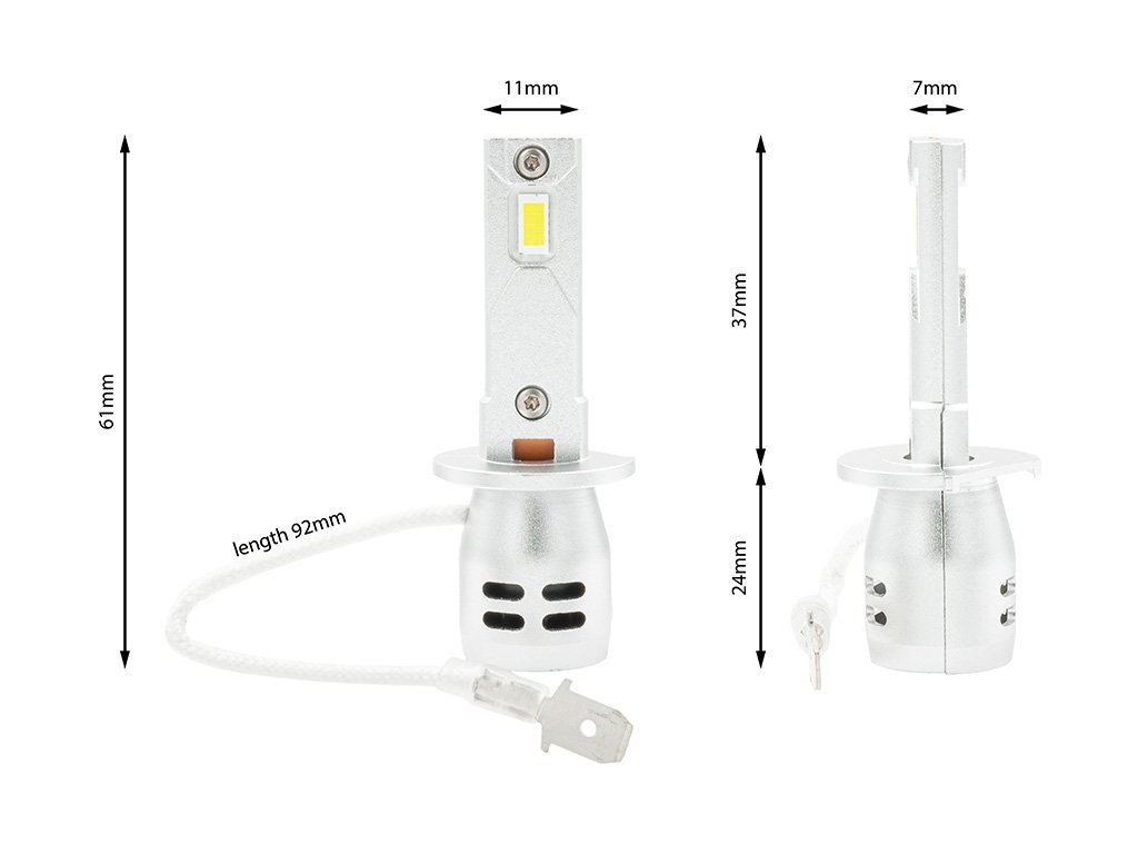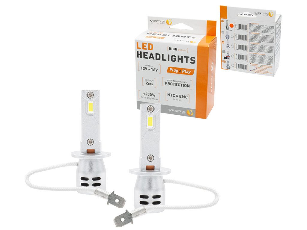 LED žárovky H1 PRO SMART SERIES poskytují až +250 % více jasu, bílé světlo 6500K a snadnou instalaci plug & play. Aktivní chlazení, ochrana proti přehřátí a integrované NTC & EMC prvky zajišťují bezpečný a stabilní provoz.