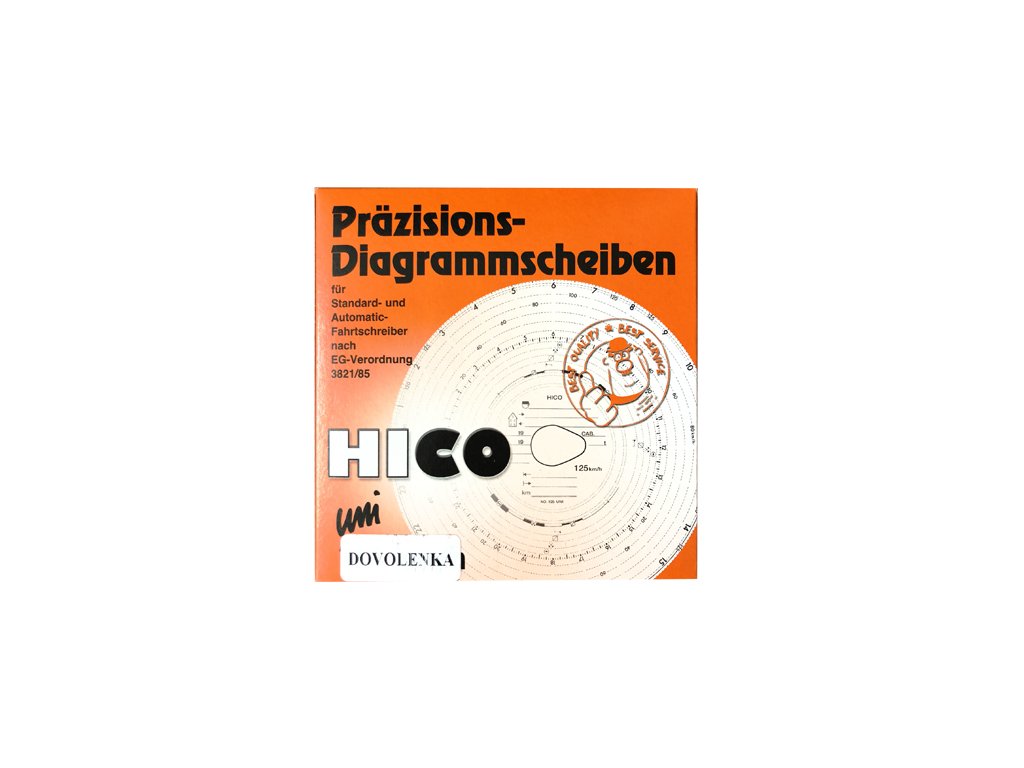 Diagramový koutouč do tachografu pro zaznamenávaní údajů o jízdě vozidla. Kotouč je vhodný pro záznamy při rychlosti do 125 km/hod.