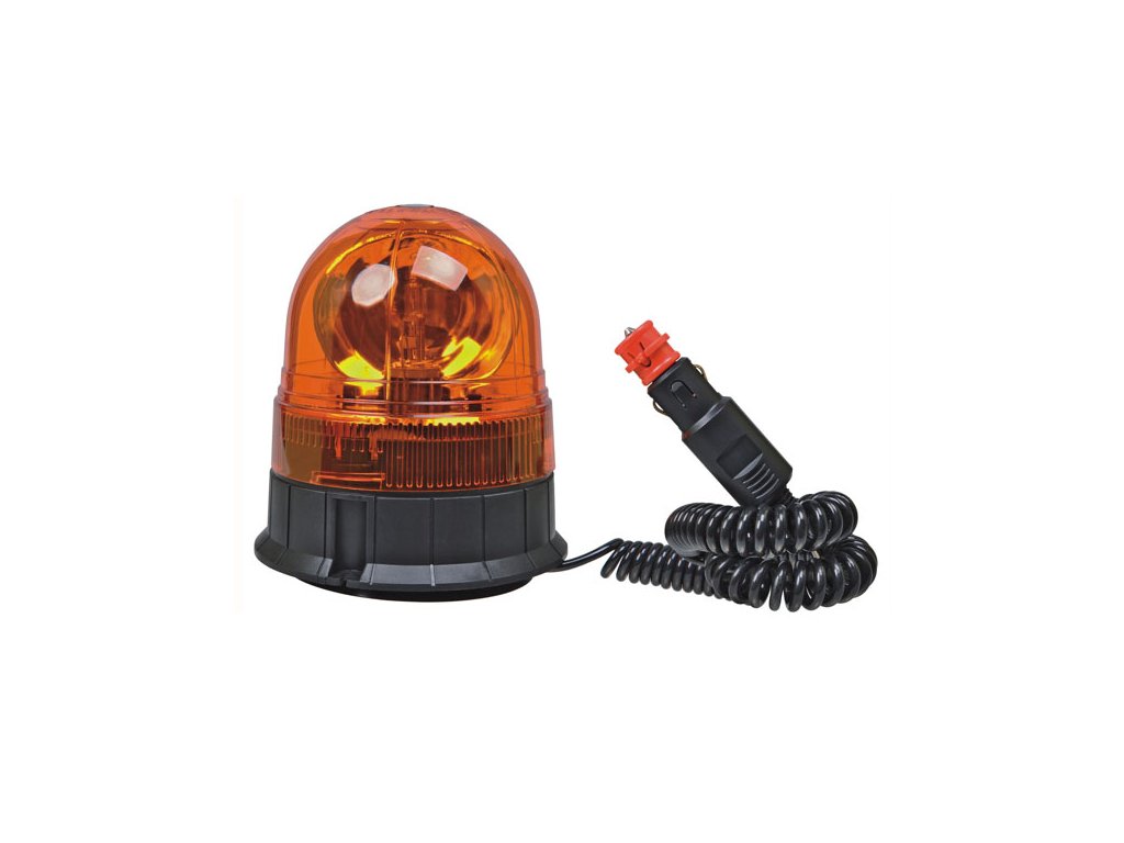 Výstražný maják s magnetickou dosedací plochou. Kabel se zástrčkou do zásuvky automobilového zapalovače.