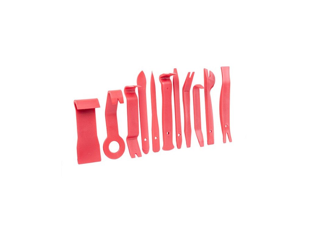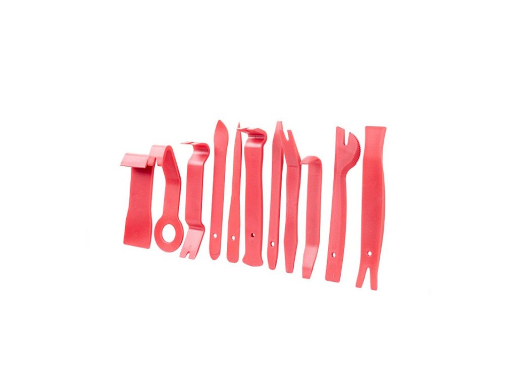 Montážní páky sada 11 kusů jsou kompletním nářadím pro demontáž a montáž interiérových dílů vozidla. Vhodné pro manipulaci s dveřními panely, palubními deskami, gumovými těsněními, ozdobnými lištami a dalšími částmi.