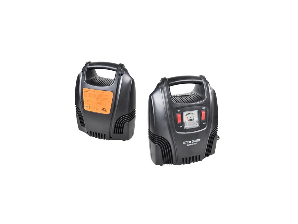 Nabíječka autobaterií s 12V/6V přepínáním a ukazatelem nabíjení. Nabíječka je vybavena režimem rychlého a pomalého nabíjení.