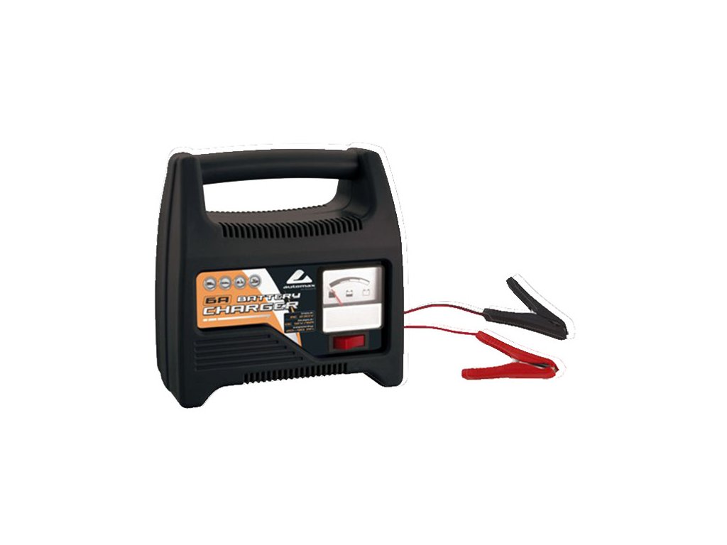 Nabíječka autobaterií s 12V/6 Amp. s přepínáním a ukazatelem nabíjení. Nabíječka je vybavena ampérmetrem.