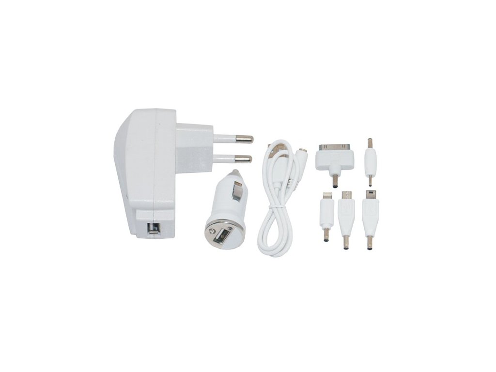 Balení obsahuje: • 1ks nabíječka s USB portem • 1ks USB uni-kabel • 1ks USB kabel pro iPhone • 7ks adaptéru pro telefony