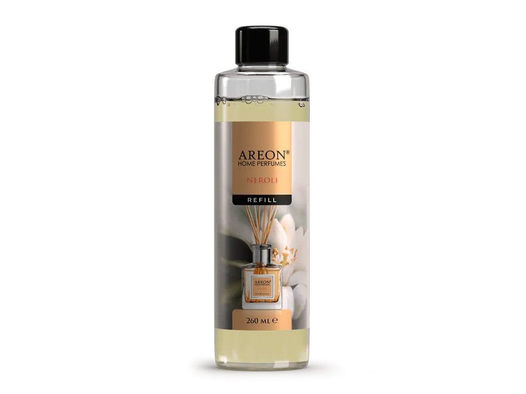 Náhradní náplň AREON HOME PERFUME Neroli (260 ml) kombinuje mandarinku, broskev a bergamot s květy neroli a orchideje, zakončené pačuli, ambrou a pižmem.