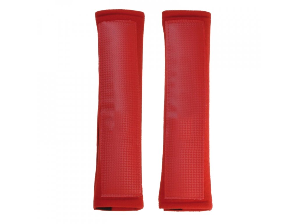 Návleky bezpečnostních pásů v červeném provedení. Návleky brání nadměrnému tlaku pásů. Kvalitní materiál s vystýlkou zajistí opravdové pohodlí při jízdě.
