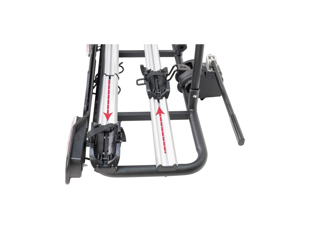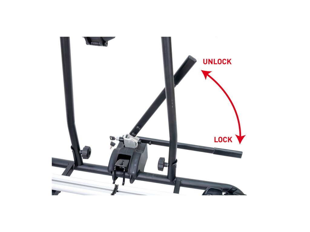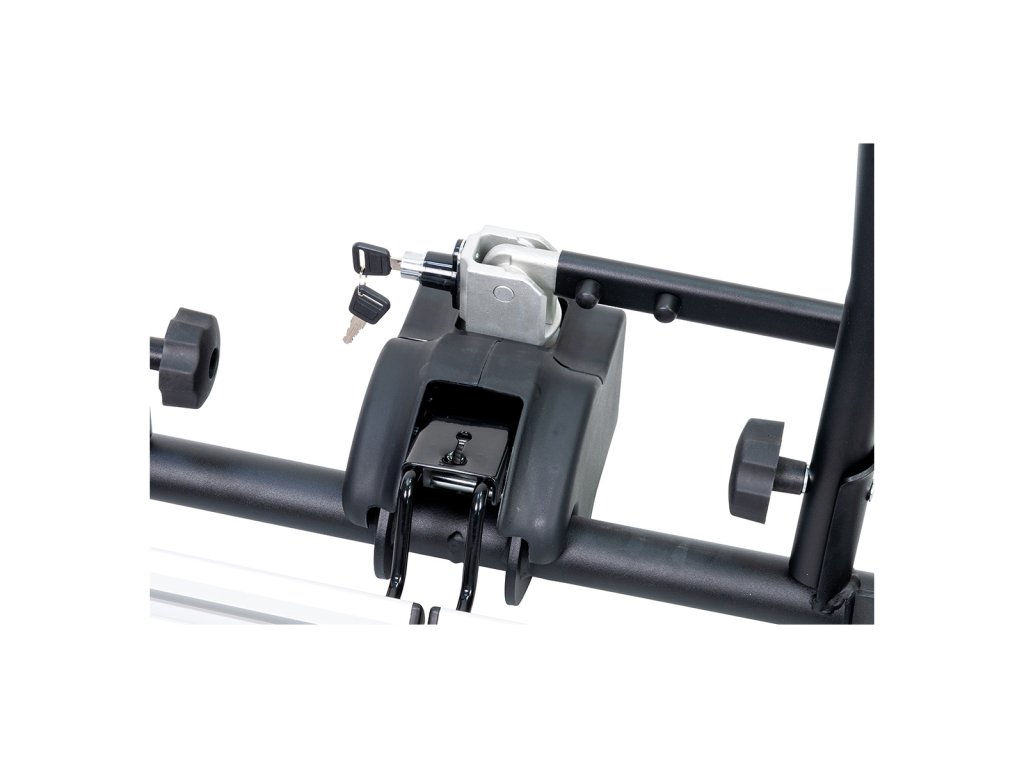 Díky jednoduchému systému uchycení není potřeba žádné nářadí – kola jsou připevněna uchycením na rám a pomocí pásek na přední a zadní kolo. Nosič je navíc vybaven uzamykacím mechanismem, který chrání kola i samotný nosič před krádeží. Ruční dotažení růžice zajišťuje pevné uchycení kol bez rizika uvolnění.