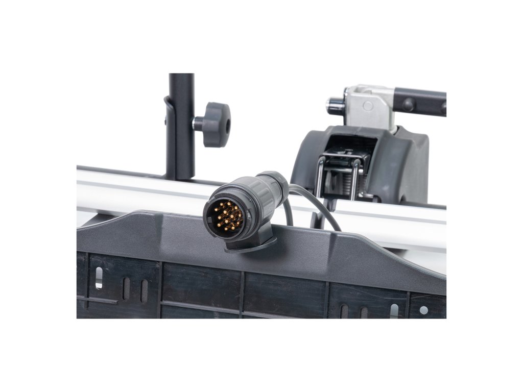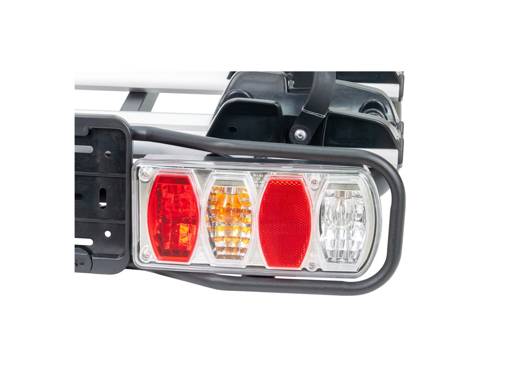 Jednou z výhod tohoto nosiče je sklopný mechanismus, který umožňuje snadný přístup do kufru i při naložených kolech. Kompletní světelný panel je napojen na 13-pólovou zásuvku tažného zařízení a zahrnuje i osvětlení pro registrační značku, což zajišťuje bezpečnost a viditelnost na silnici.