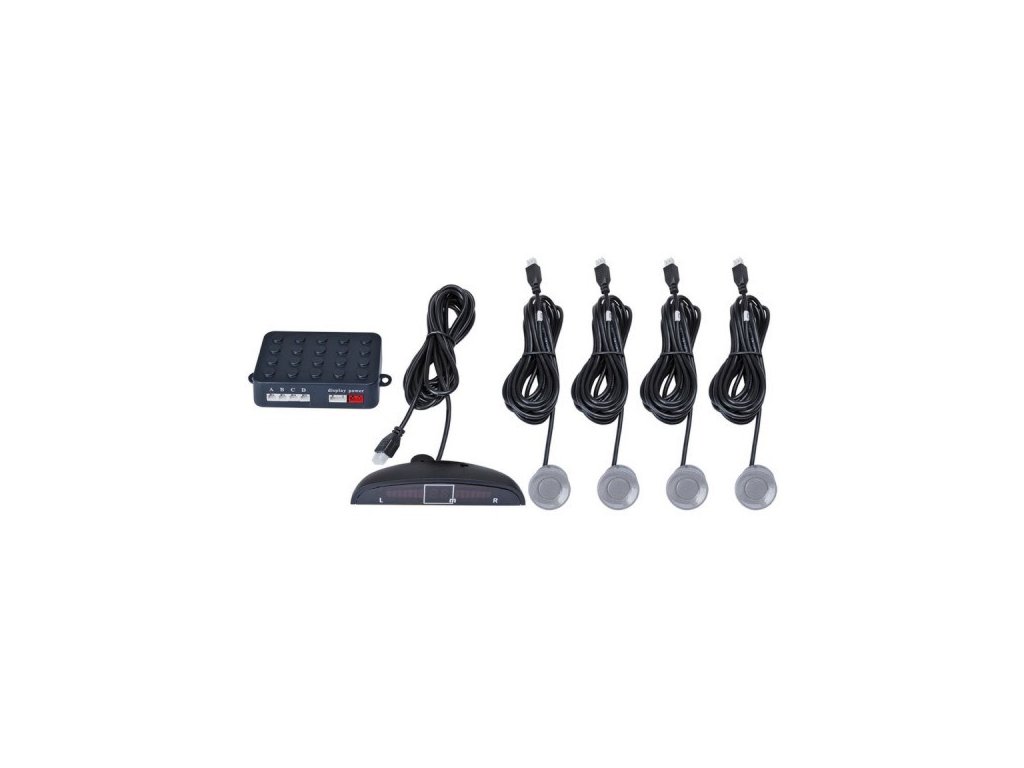 Parkovací sensory sada 4 kusy ve stříbrném provedení. Snímač parkovací plochy se skládá z ultrazvukových senzorů, digitálně ovládací skřínky a LED displeje.