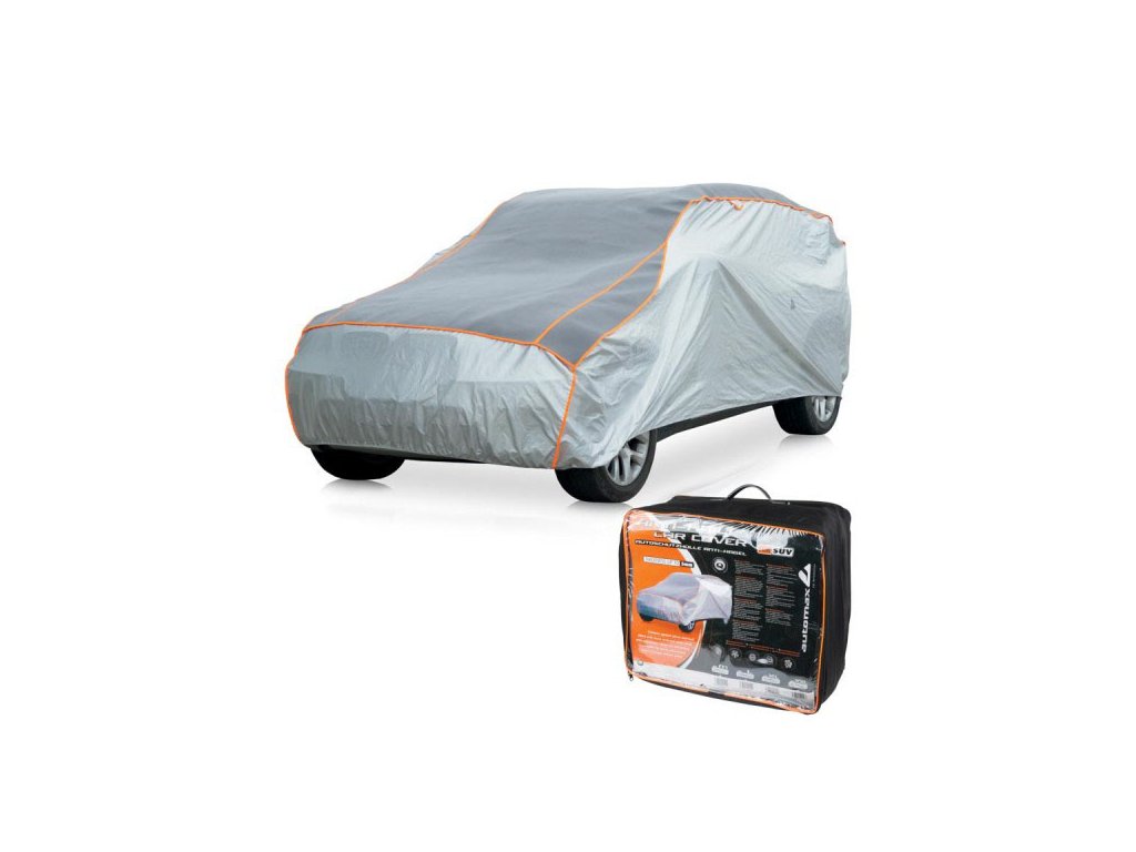 Plachta na auto typu SUV ve velikosti L. Chrání vozidlo před vlivy počasí, před slunečním zářením, deštěm i sněhem. Povrch je plněný pěnovým materiálem čímž je ochranná vrstva hrubší o 5 mm.