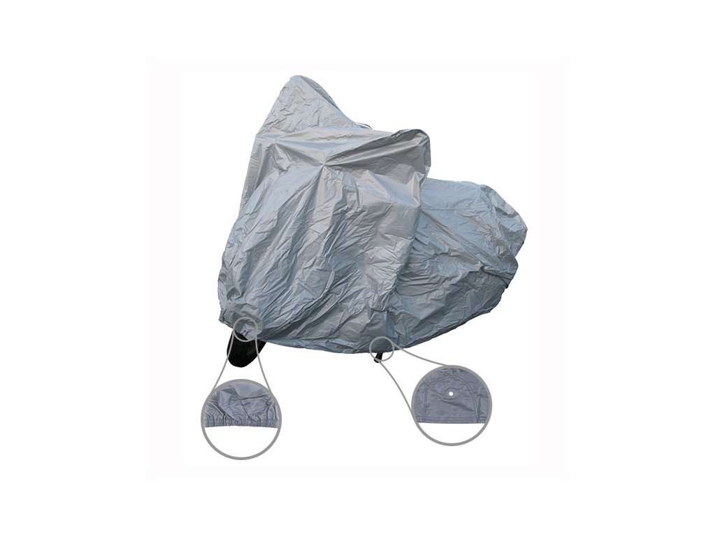 Plachta na motorku ve velikosti M. Chrání motocykl před vlivy počasí, před slunečním zářením, deštěm i sněhem.