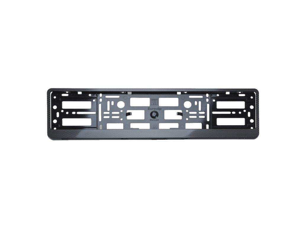 Plastová podložka pod tabulku registrační značky (RZ) nebo státní poznávací značky (SPZ) běžných rozměrů. Karbonová lišta podtrhuje celkový vzhled rámečku.