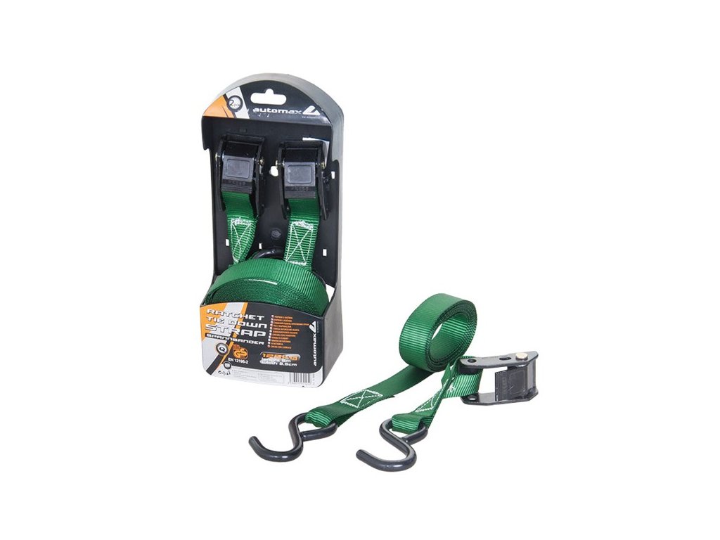 Praktické upínací popruhy s ráčnou s homologací TÜV/GS k zajištění předmětů, zavazadel, nebo nákladu. Pro upnutí se využívá kovových háků, popruh tak najde ještě širší uplatnění při upevňování předmětů.
