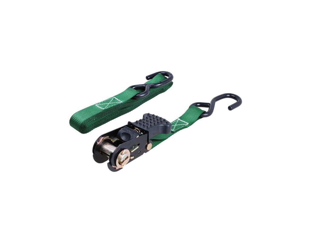 Praktický upínací popruh s ráčnou s homologací TÜV/GS k zajištění předmětů, zavazadel, nebo nákladu. Pro upnutí se využívá kovových háků, popruh tak najde ještě širší uplatnění při upevňování předmětů.