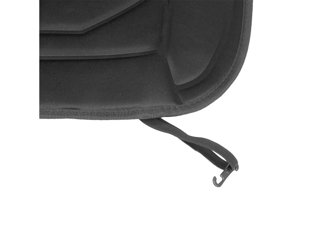 Univerzální velikost a montáž pomocí elastických pásků a zajišťovacích háčků umožňují rychlou instalaci bez zásahu do konstrukce sedadla.