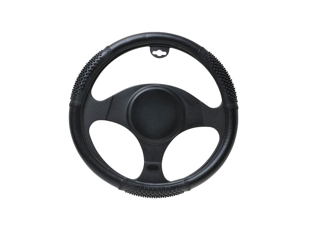 Kvalitní potah na volant MASSAGE. Atraktivní tuningový design v černé barvě. Potah disponuje masážními body na hlavních plochách volantu. Potah na volant zlepšuje řízení vozidla a zabraňuje klouzání rukou po volantu. Chrání volant před opotřebením.