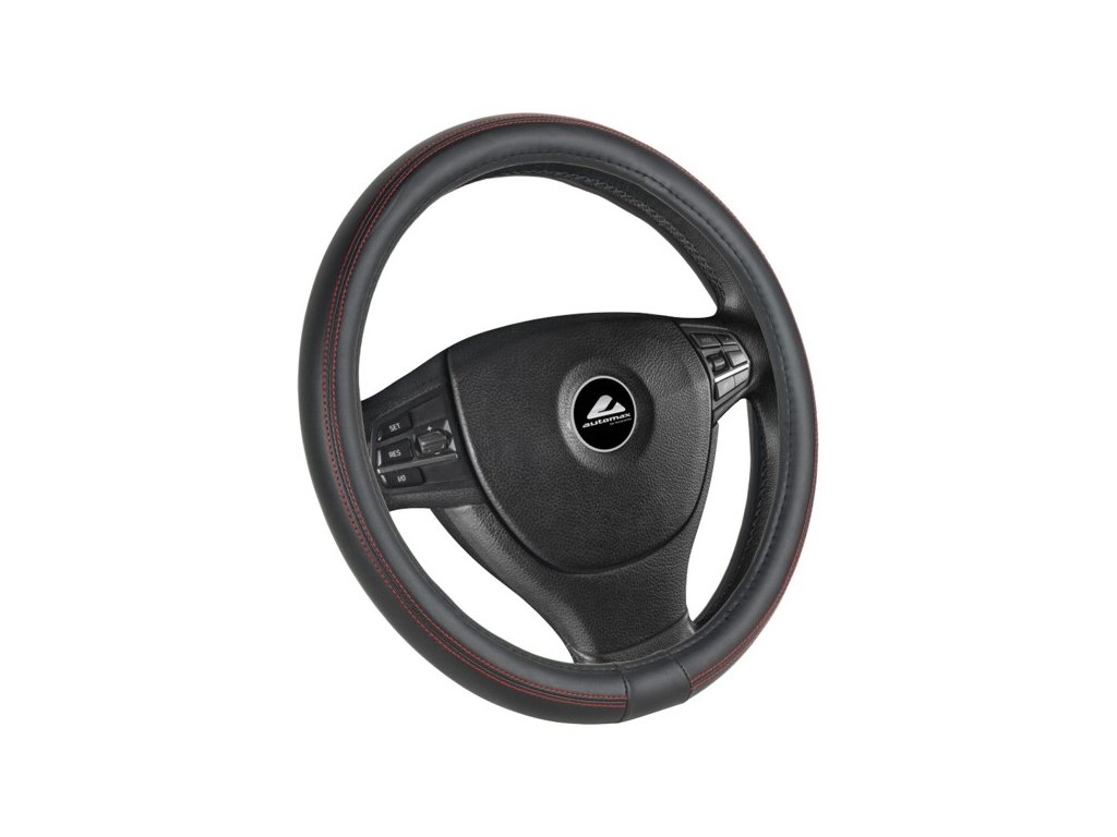 Kvalitní potah na volant RED STITCH. Atraktivní tuningový design v černé barvě s červeným prošívaným detailem. Potah na volant zlepšuje řízení vozidla a zabraňuje klouzání rukou po volantu. Chrání volant před opotřebením.