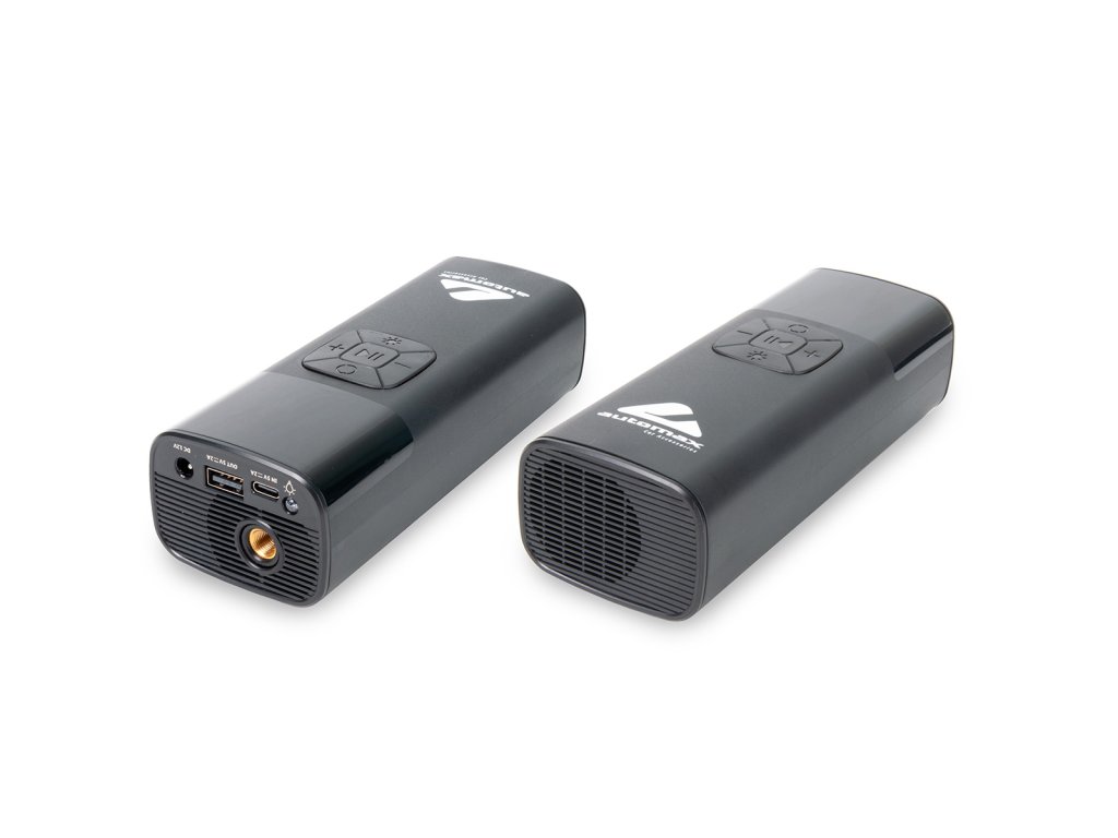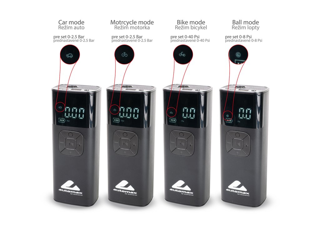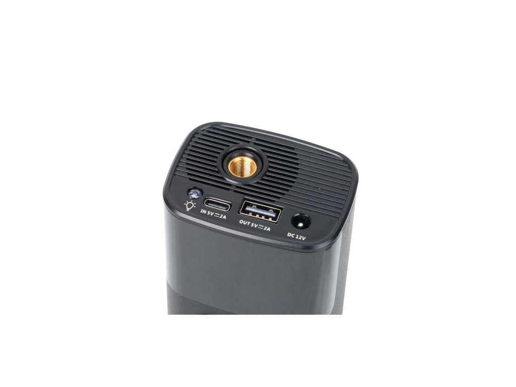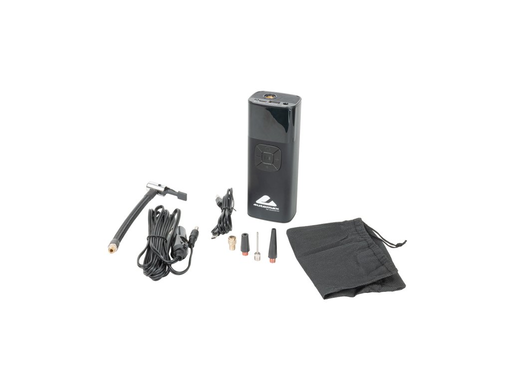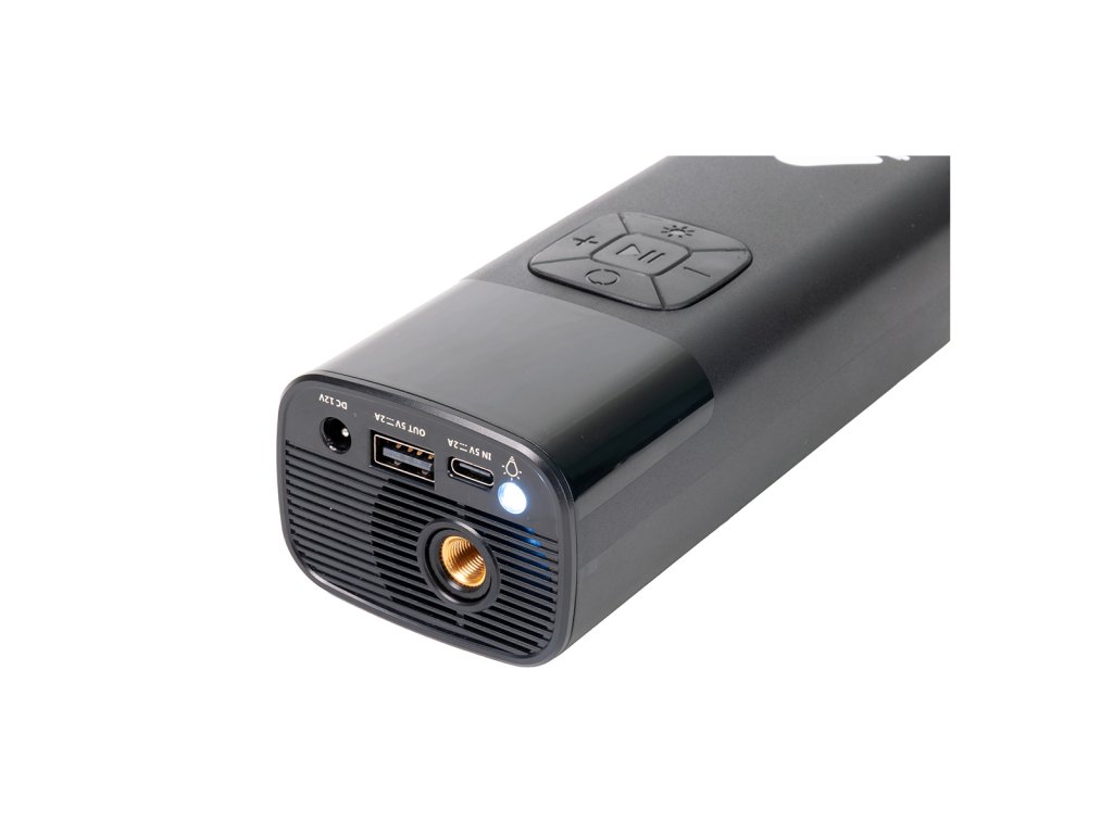 Díky USB a 12V DC napájení je kompresor snadno dobíjitelný a bezdrátová funkce zajišťuje plnou mobilitu. Navíc má kompresor USB výstup (5V-2A), který lze využít jako powerbanku pro nabíjení mobilních telefonů a jiných zařízení, což z něj dělá ideálního společníka na cesty. Kompaktní design (16,2 x 6,3 x 4,7 mm) a nízká hmotnost 626 g zajistí, že jej snadno vezmete s sebou. Součástí balení jsou různé nástavce pro nafukování pneumatik, míčů a dalších nafukovacích produktů.
