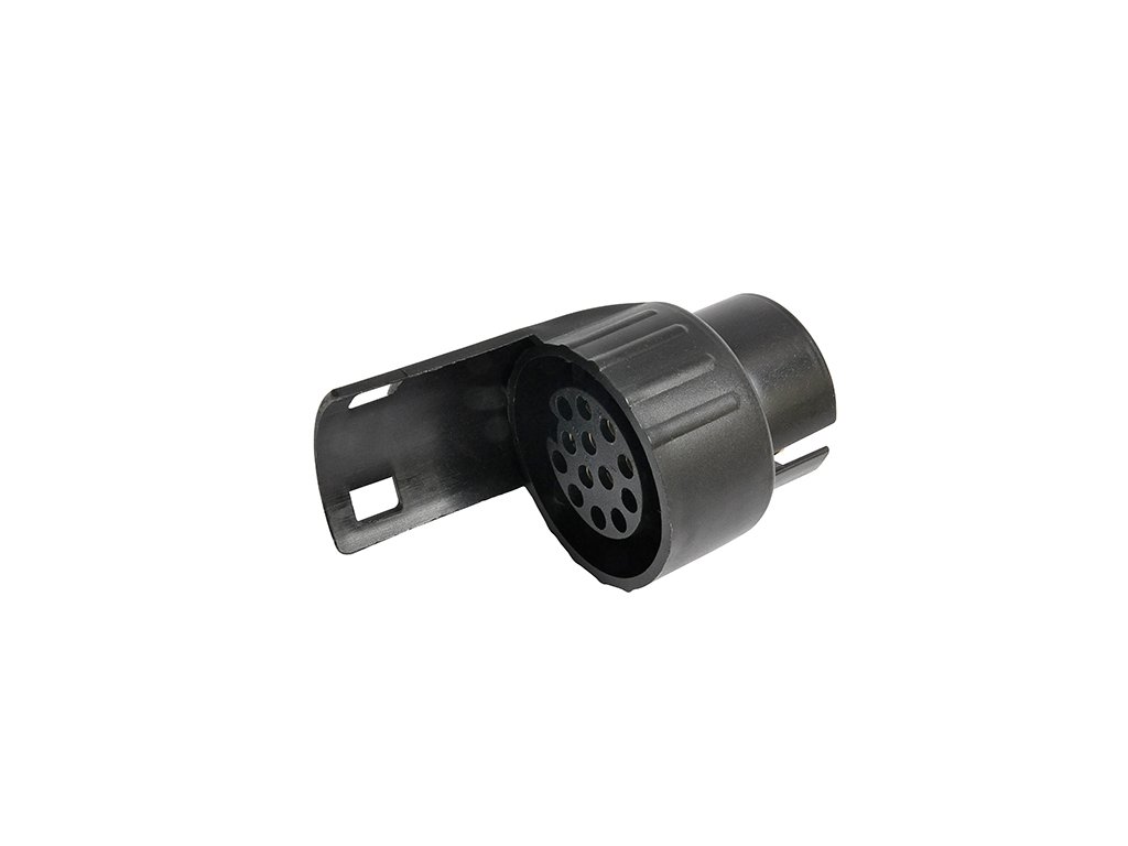 Redukce zásuvky tažného zařízení 7/13 PIN. Redukce umožňuje zapojení elektroinstalace vozidla s přívěsným vozidlem, pokud mají rozdílné konektory.