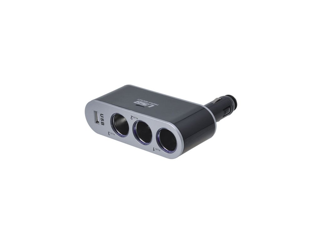 Roztrojka zapalovače s USB. Roztrojka zapalovače umožňuje připojení více spotřebičů k jedné standardní zásuvce zapalovače v automobilu.