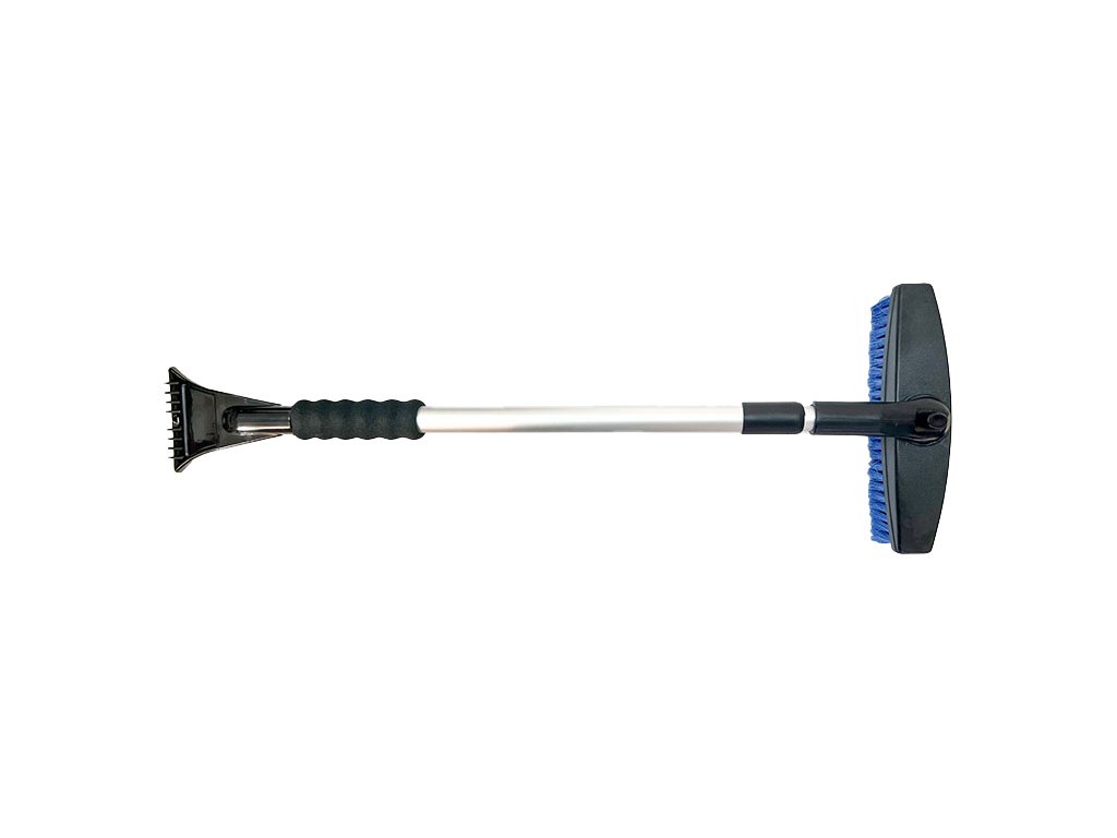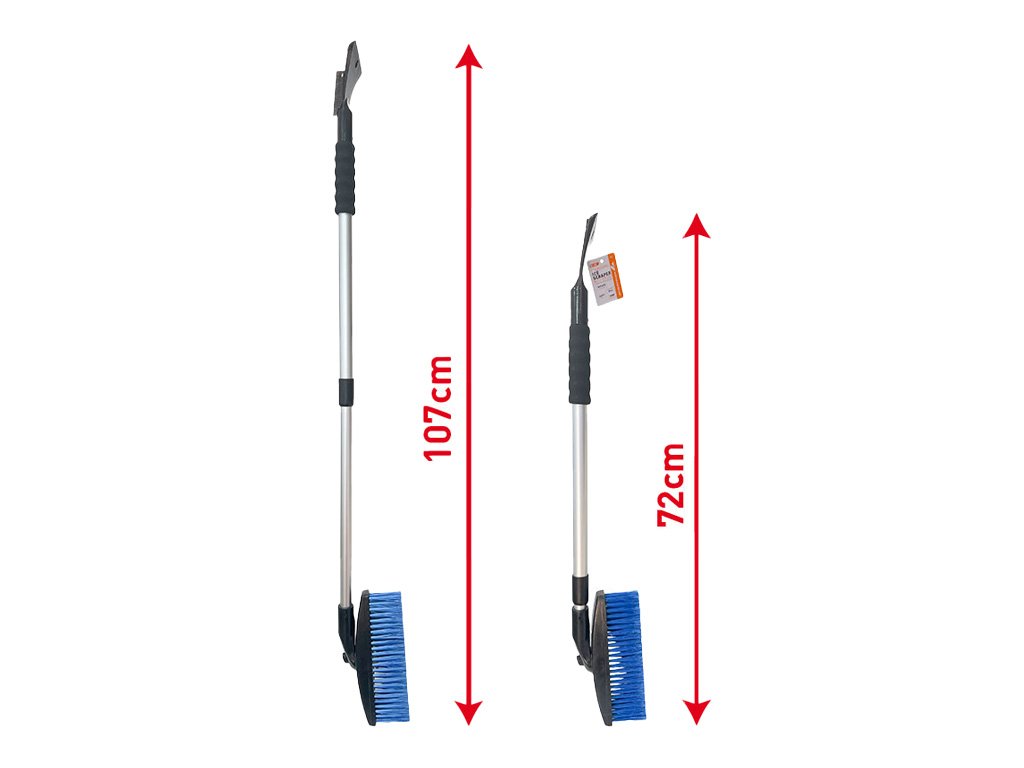 Teleskopická škrabka na led se smetákem otočná. Efektivně a šetrně pomáhá s odstraněním sněhu a ledu z vašeho auta. Velmi atraktivní a účelně navržený design pro snadné použití. Jedna strana je opatřena tvrzenou škrabkou s vroubky i hladkým profilem. Z druhé strany pak můžete nalézt smeták na ometání sněhu.