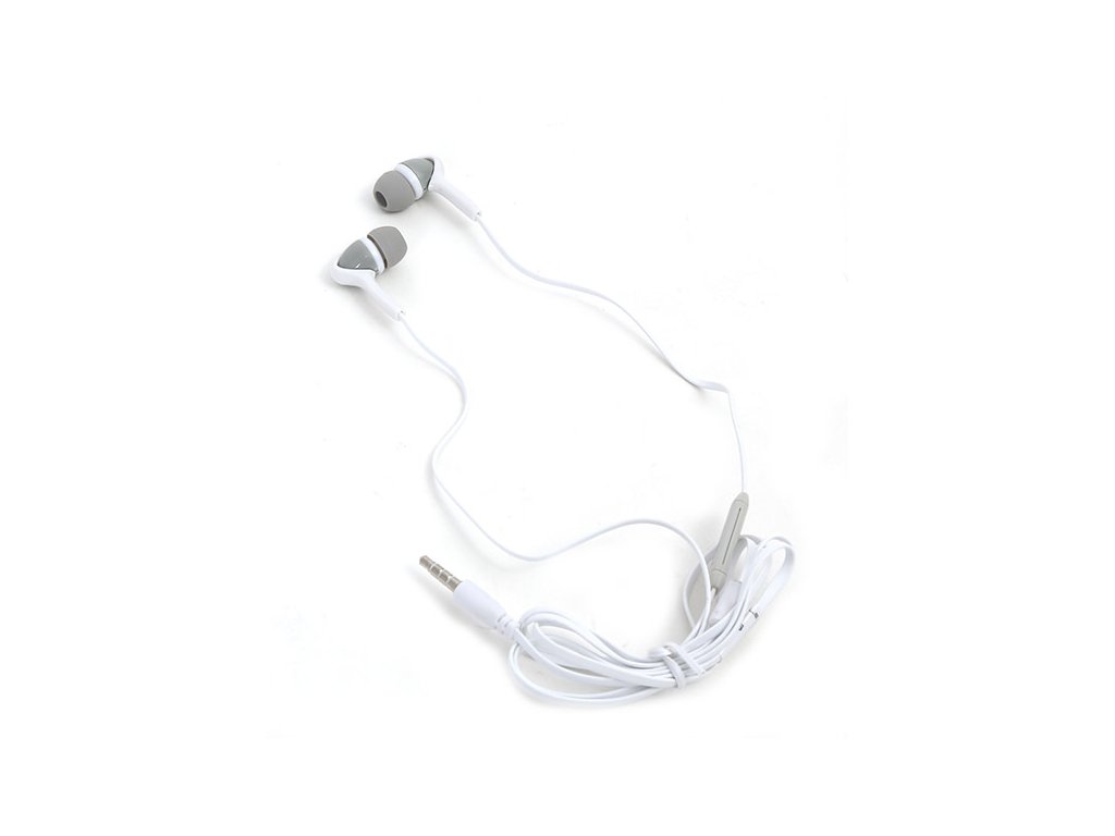 Sluchátka jsou vybavena mikrofonem. Design sluchátek je v bílé barvě s šedými detaily.