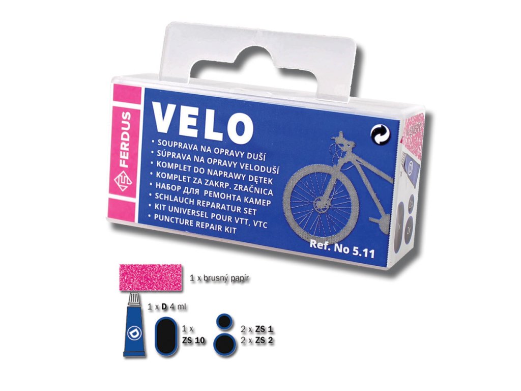 Souprava na opravu duší VELO. V případě nouze oceníte rychlou opravu defektu. Opravu zvládnete bez větších problémů sami.
