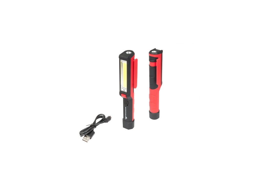 Svítilna ruční - pracovní 2W COB + 1 LED, s lithiovou baterií 3,7V - 900mAh, 120 - 150lm, bíle denní světlo, dlouhá životnost díky technologii LED.