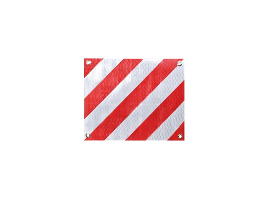 Plechová tabule nadrozměrného nákladu. Reflexní značení nadrozměrného a přečnívajícího nákladu slouží k označení jednotky při nadrozměrné přepravě.
