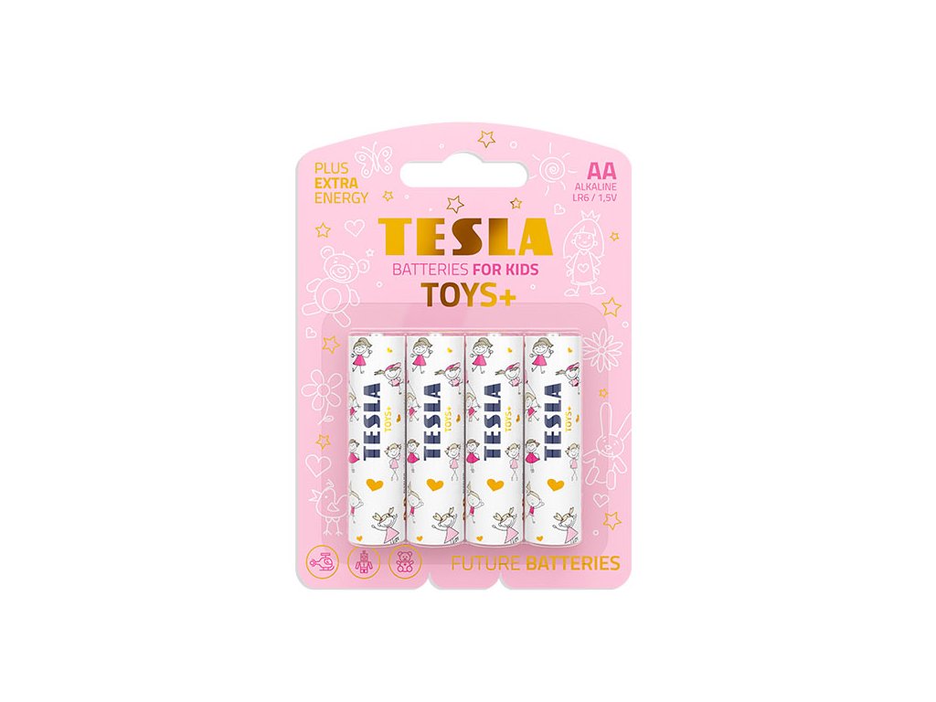 TESLA TOYS+ GIRL Alkalická baterie (tužková) LR06/AA. Řada TESLA TOYS+ je naší nejvyšší třídou alkalických baterií vycházející z řady GOLD+, které byly speciálně vyvinuty pro energeticky velmi náročné přístroje, například fotoaparáty a jejich blesky. Tato řada přináší nejvyšší výkon v dlouhém časovém úseku. • 1,5V • Kapacita 2700 mAh • 4 ks blister