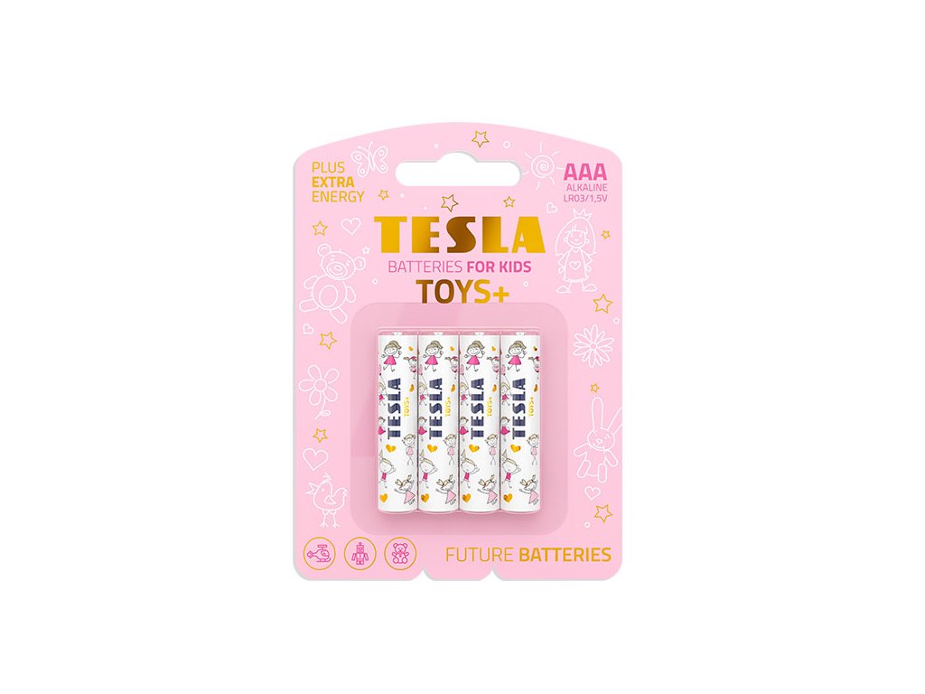 TESLA TOYS+ GIRL Alkalická baterie (tužková) LR03/AAA. Řada TESLA TOYS+ je naší nejvyšší třídou alkalických baterií vycházející z řady GOLD+, které byly speciálně vyvinuty pro energeticky velmi náročné přístroje, například fotoaparáty a jejich blesky. Tato řada přináší nejvyšší výkon v dlouhém časovém úseku. • 1,5V • Kapacita 1200 mAh • 4 ks blister