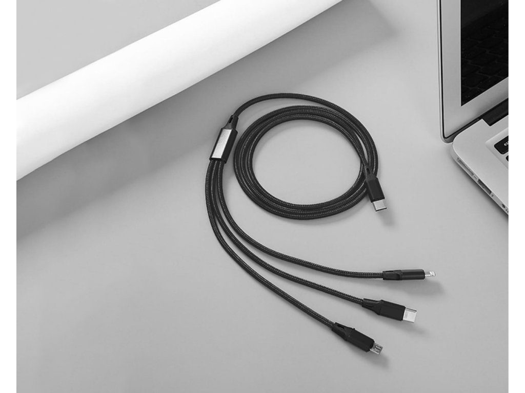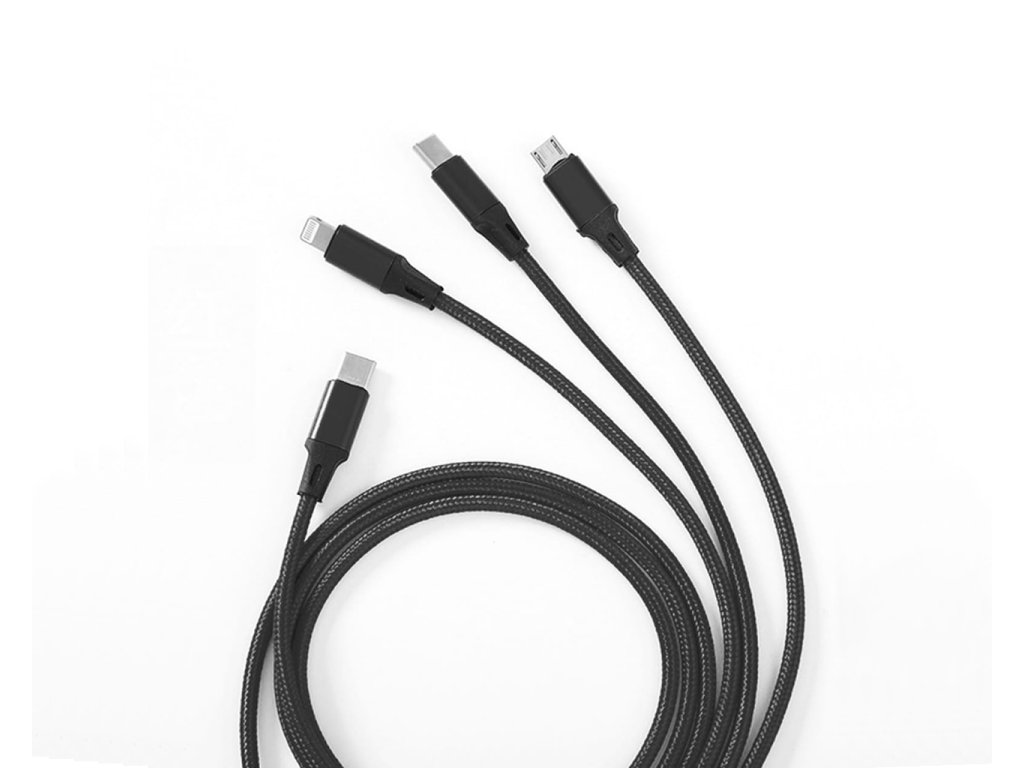 Kabel je kompatibilní se všemi smartphony a tablety s nabíjecím portem Lightning / USB-C / MicroUSB.