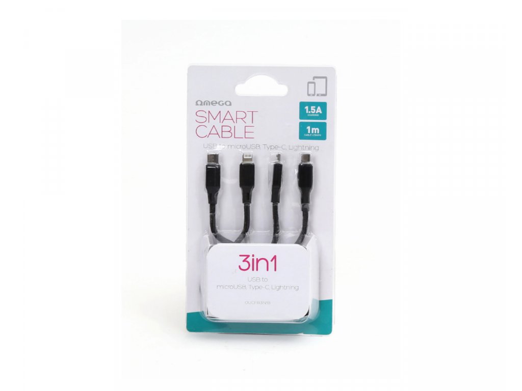 Kabel Omega USB-C 3v1 je multifunkční kabel vybavený až třemi různými konektory: Lightning/MicroUSB/USB-C, což vám umožní rychle nabíjet tři zařízení současně, bez ohledu na to, od kterého výrobce pocházejí.