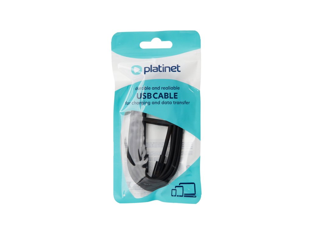 Černý USB-C kabel Platinet o délce 1,5 m nabízí rychlé nabíjení s výkonem až 100W (5A) a přenos dat rychlostí 480 Mbps. Vyroben z odolného TPE materiálu, ideální pro dlouhodobé používání. Kompatibilní s technologiemi Power Delivery a širokou škálou moderních zařízení. Bezpečný s certifikáty CE a RoHS.