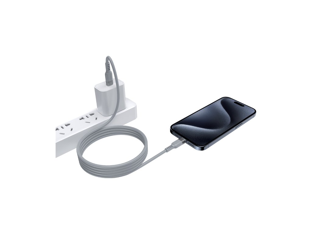 Kabel je kompatibilní s nejnovějšími nabíječkami a zařízeními podporujícími rychlé nabíjení, což z něj činí spolehlivé řešení pro každodenní používání doma, v kanceláři nebo na cestách. S moderním šedým designem vypadá stylově a elegantně.