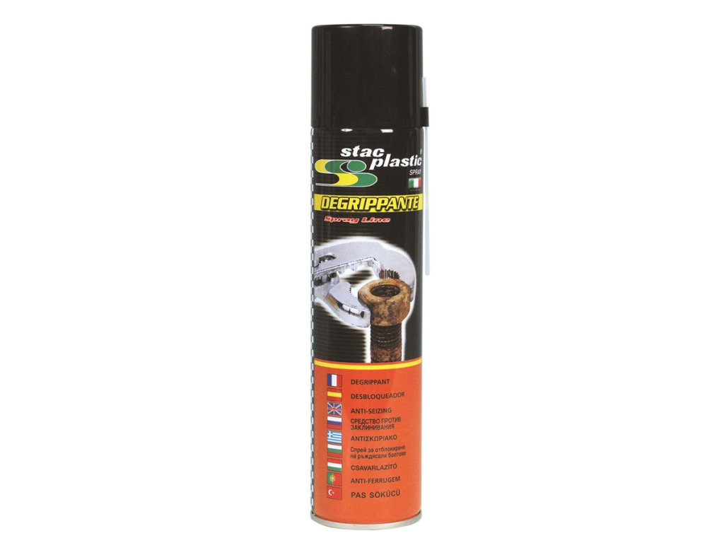 Uvolňovač šroubů STAC PLASTIC. Přípravek uvolňuje příliš silně utáhnuté šrouby, spojovací materiál, objímky a kloubové spoje. Přemašťuje závitové části a chrání je před korozí.