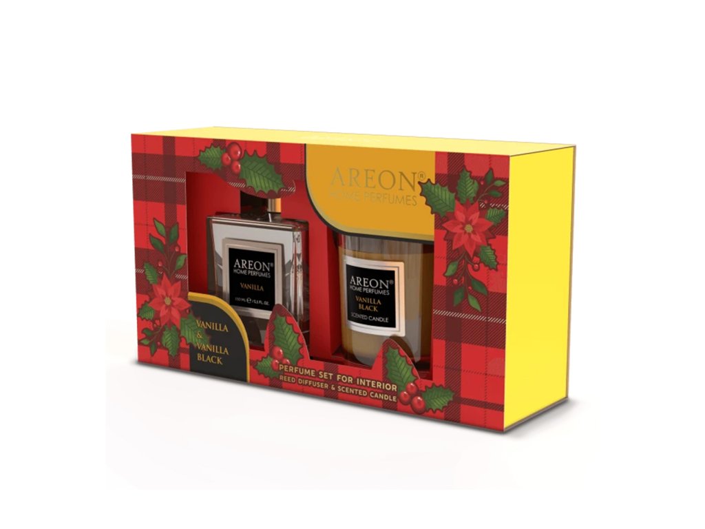 Vánoční set AREON HOME PERFUME 150 ml + CANDLE - Vanilla & Vanilla Black