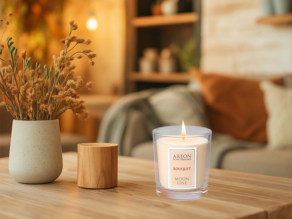 Nechte svůj interiér rozkvést s jemnou vůní AREON Scented Candle Moon Line Bouquet. Tato elegantní svíčka přináší do prostoru svěží květinovou harmonii – jemně sladkou, romantickou a dokonale vyváženou. Je jako kytice čerstvě natrhaných květů, která rozzáří váš den a zklidní večer.