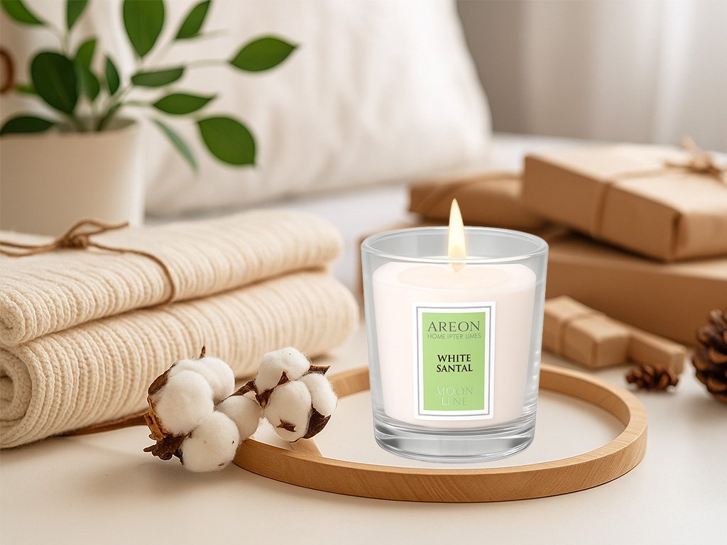 Dopřejte svému domovu atmosféru klidu a vyrovnanosti s AREON Scented Candle Moon Line White Santal. Jemně dřevitá vůně santalového dřeva se snoubí s tóny vanilky a ambry, vytvářející dokonale vyváženou kombinaci tepla, elegance a čistoty.