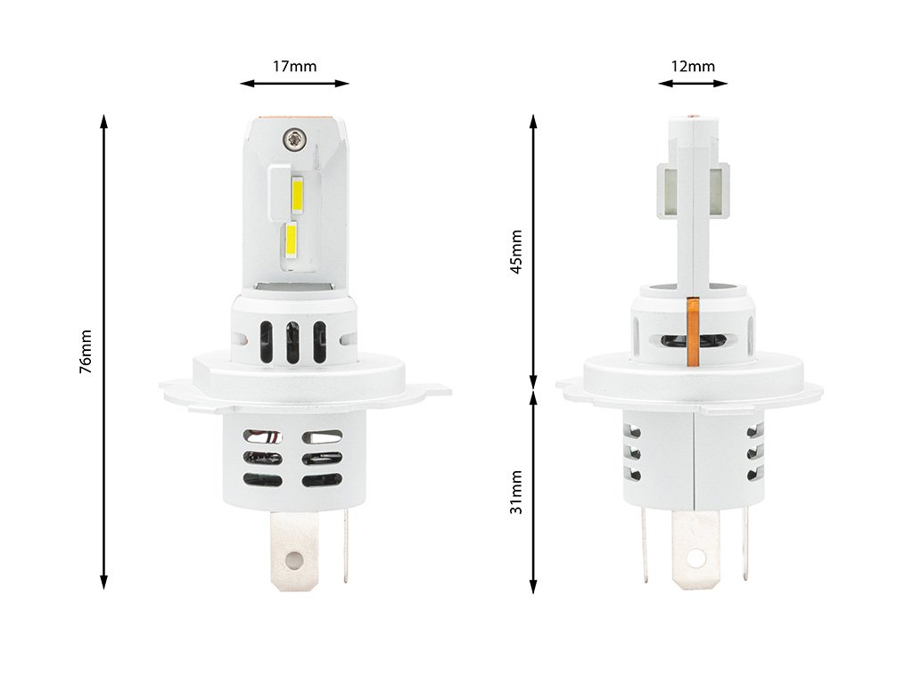 LED žárovky H4 PRO SMART SERIES poskytují až +250 % více jasu, bílé světlo 6500K a jednoduchou instalaci plug & play. Díky aktivnímu chlazení, ochraně proti přehřátí a integrované NTC & EMC ochraně nabízejí maximální výkon a bezpečnost.
