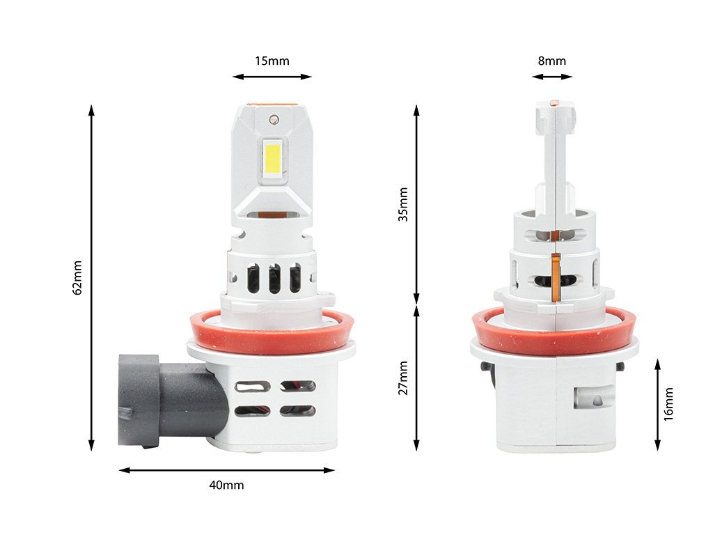 Robustní tělo z hliníkové slitiny zajišťuje vysokou odolnost a ideální odvod tepla. LED H8/H11 PRO SMART SERIES jsou ideální volbou pro řidiče, kteří hledají maximální výkon, čisté světlo, dlouhou životnost a jednoduchou montáž.