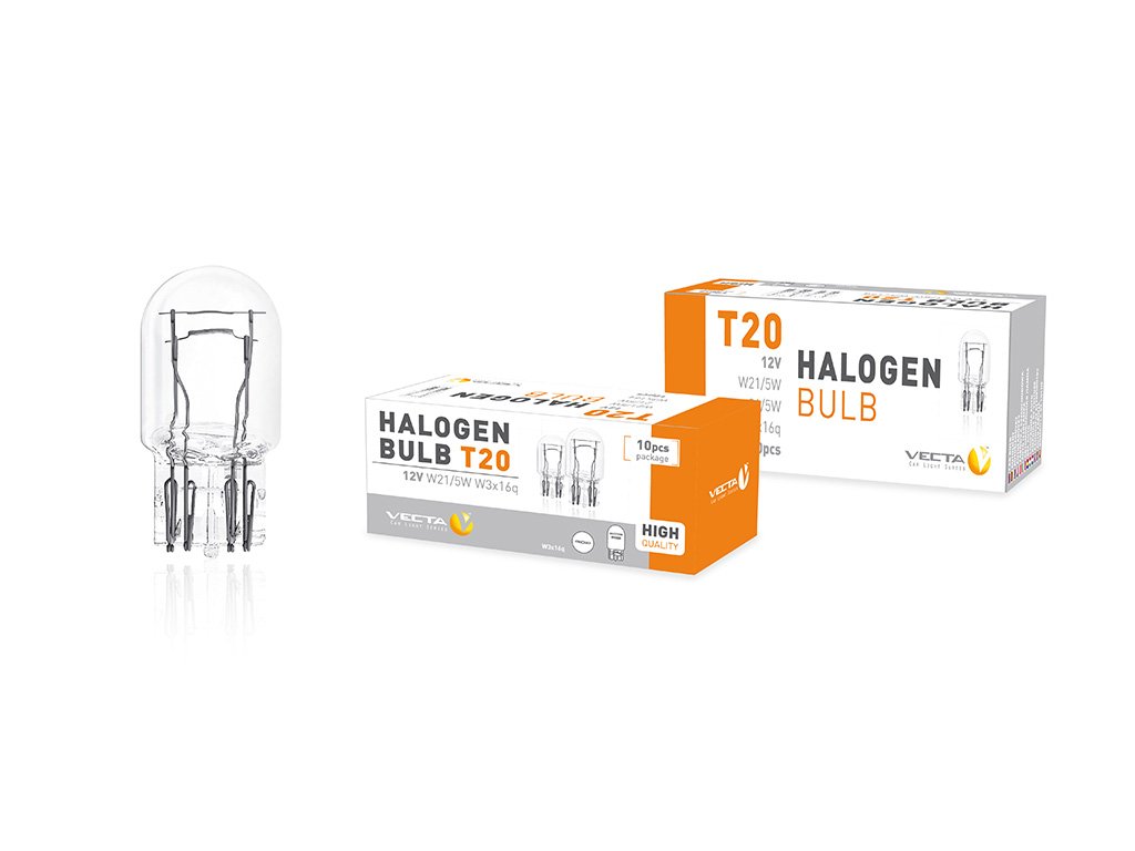 Halogenová žárovka VECTA T20 12V 21/5W, typ W3x16d (bezpaticová). Vhodná pro brzdová světla, obrysová a koncová světla. Kvalitní provedení, vysoká svítivost a dlouhá životnost.