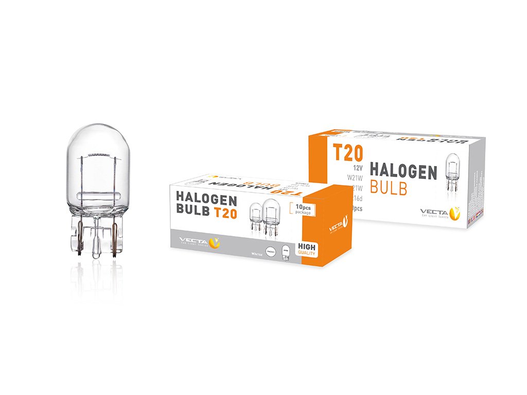 Halogenová žárovka VECTA T20 12V 21W, typ W3x16d (bezpaticová, jednouvláknová). Vhodná pro směrová světla, zadní koncová a některá denní světla. Kvalitní provedení a dlouhá životnost.